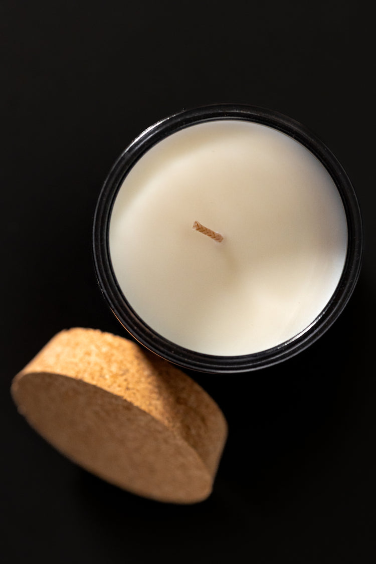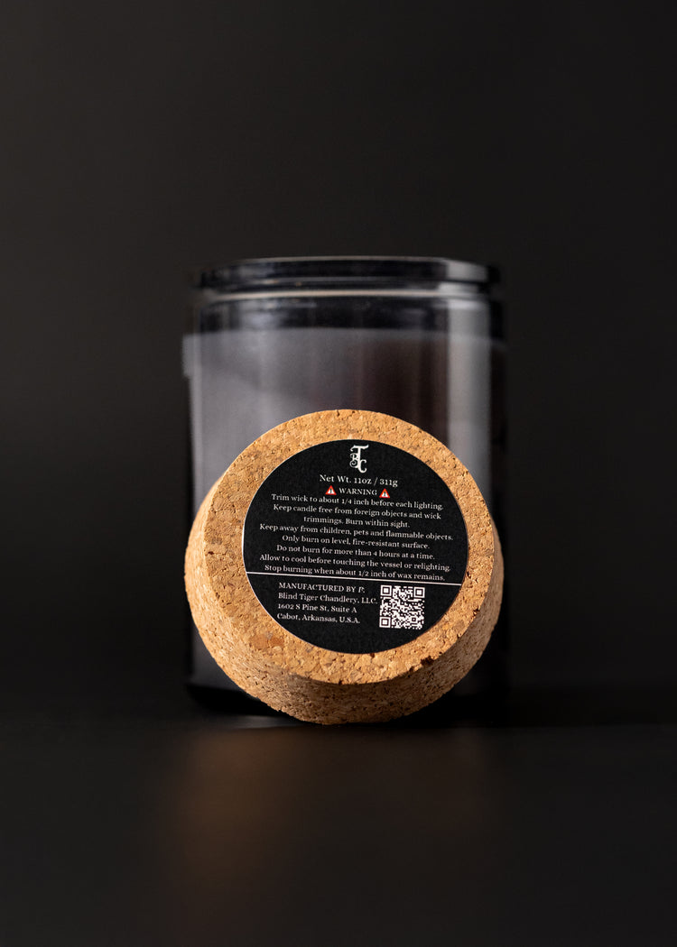 SIZE: 11 oz. smoke grey glass, single-wick candle with cork lid