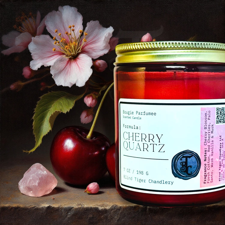 Part of our spring 2025 collection, Cherry Quartz makes its debut with soft & sensual notes of Cherry Blossom, Fresh Cotton, Red Cherries, Palo Santo, Warm Vanilla & Musk.